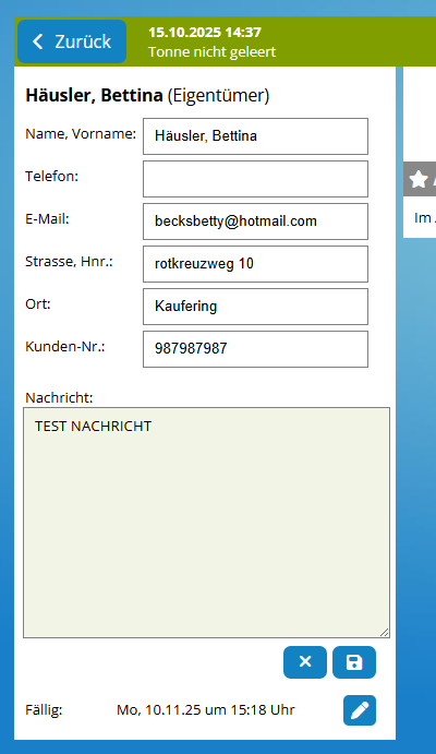 - ein Feedback an einen Kollegen oder auch an ein Abfuhrunternehmen weiterzuleiten