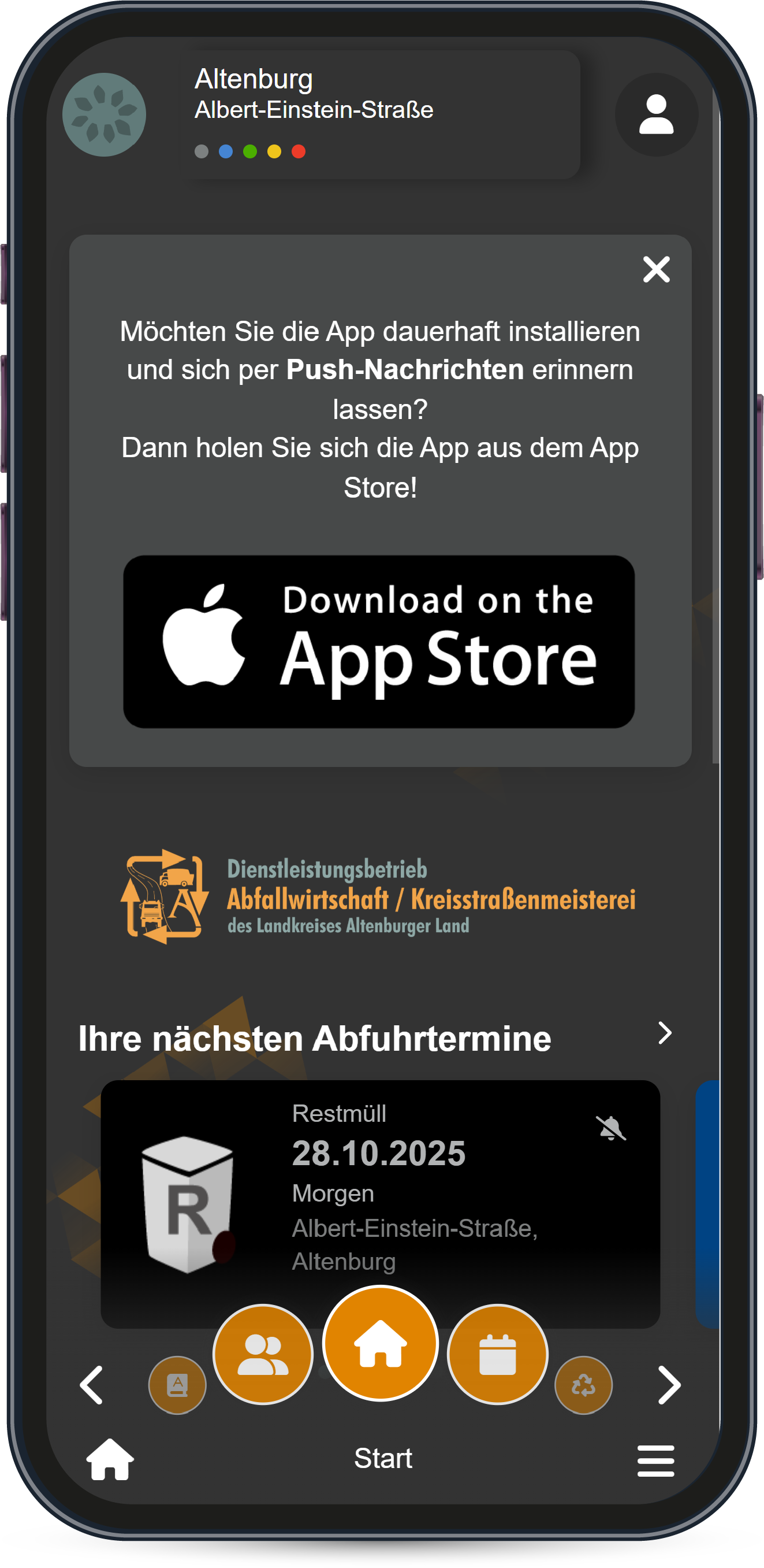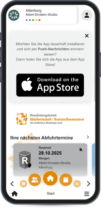 Die Anwendung, gehalten in den Farben der Altenburger Abfallwirtschaft, Orange und Grün, hat neben dem Abfallkalender noch viele weitere nützliche Features. Zum Beispiel kann über die App sogenannter wilder Müll gemeldet werden. Mit einem Foto und dem Standort können die Bürger des Landkreises in Thüringen den zuständigen Abfallwirtschaftsbetrieb informieren und so für eine saubere Umgebung sorgen.