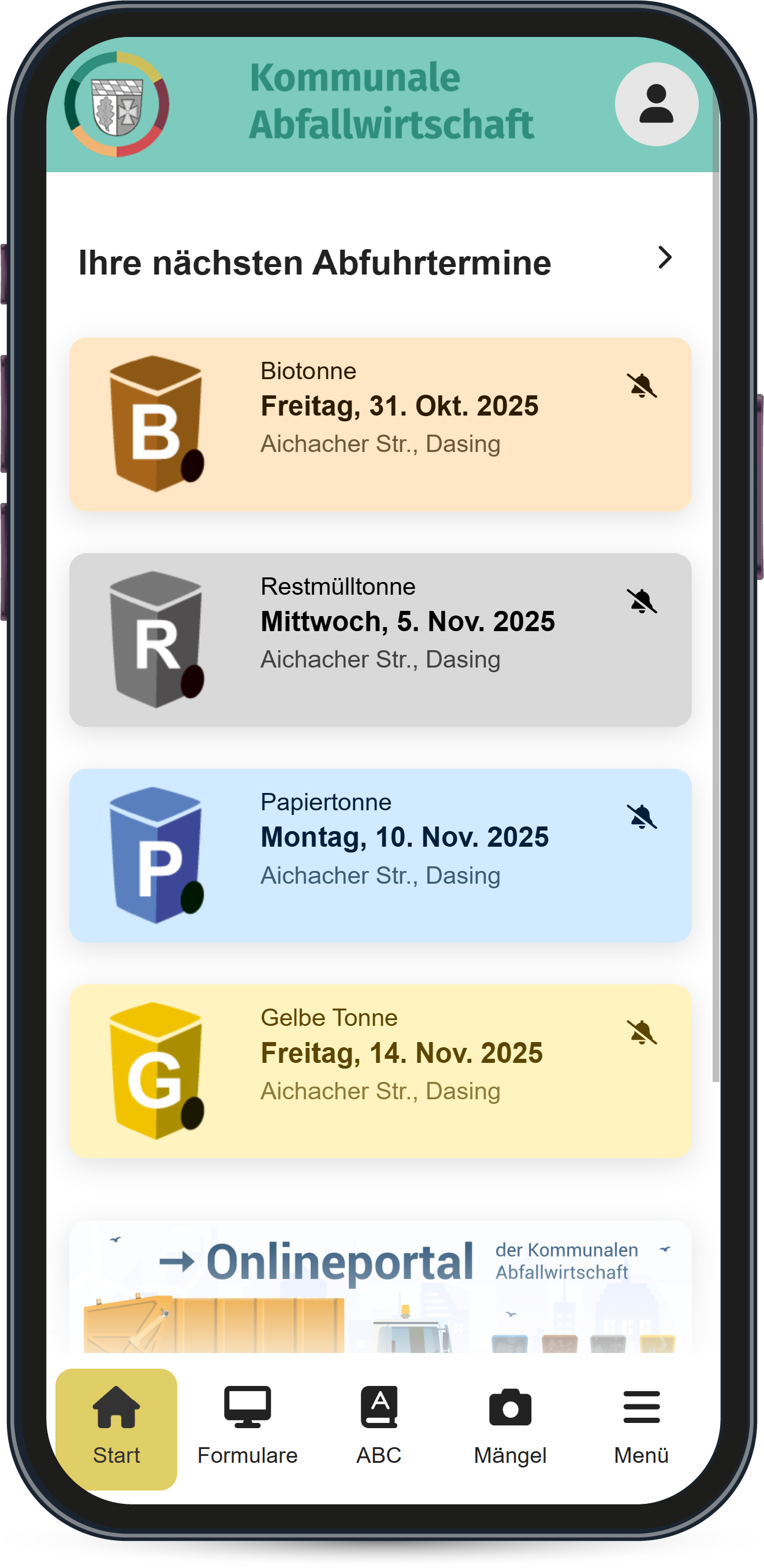 Das Landratsamt Aichach-Friedberg hat 2016 ebenfalls das AWIDO-System eingeführt. Mit der Abfuhrapp und den attraktiven Web-Komponenten, können die Bürger alle Informationen rund um die Abfalentsorgung digital abfragen. "Wann wird welche Tonne geleert", "Wo befindet sich der nächte Werstoffhof und wann hat dieser geöffnet".