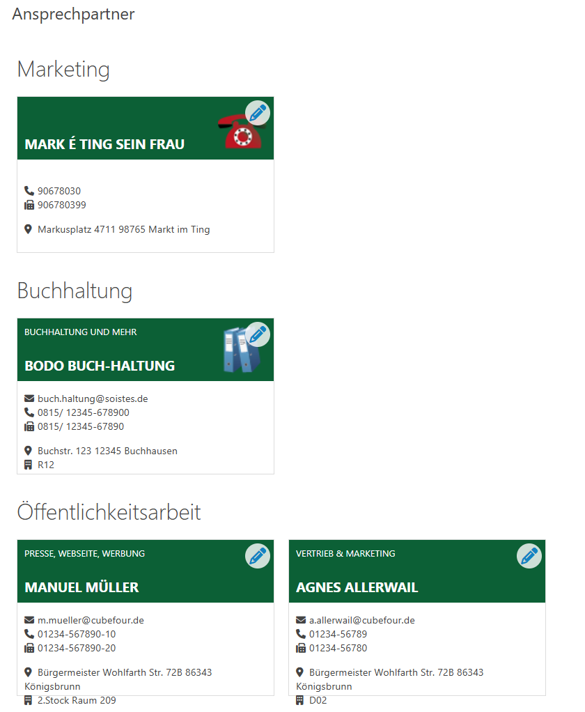 - Es lassen sich beliebig viele Ansprechpartner mit allen relevanten Daten anlegen