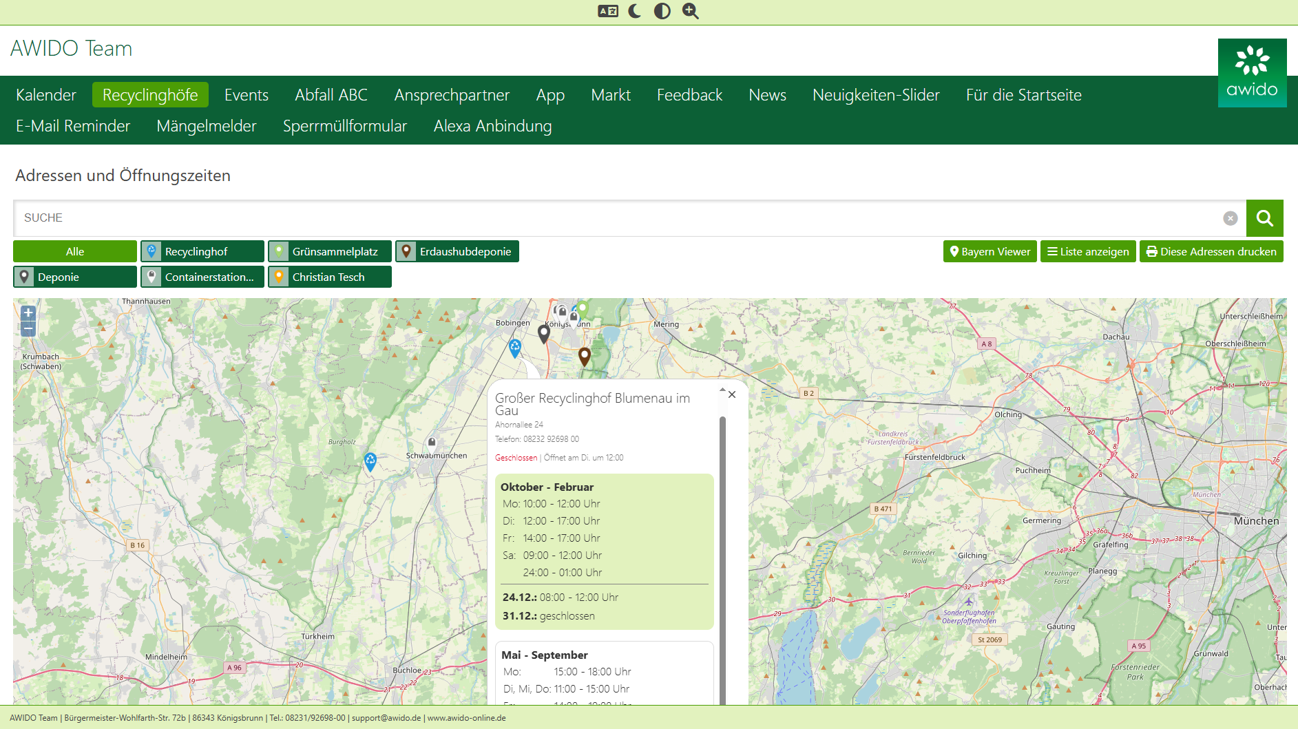 Eine praktische Komponente für die Bürger ist die Liste der Entsorgungseinrichtungen mit intelligentem Lageplan.
