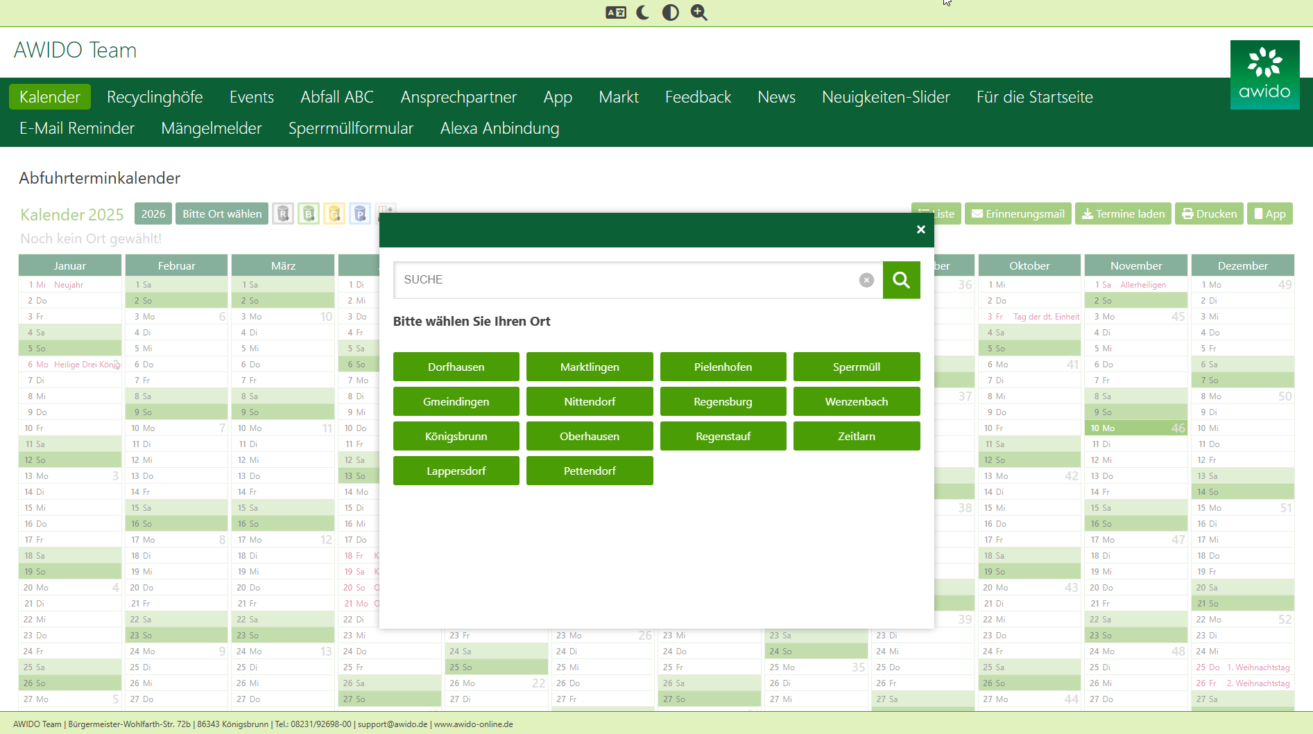 Damit sich unsere Nutzer nicht auf die Suche nach Ihrem Ortsteil machen müssen, wird die Ortswahl direkt am Anfang eingeblendet. Unser intelligentes Filtersystem passt dann entsprechend der Nutzereingaben die Auswahlmöglichkeiten an. Dadurch wird die Auswahl der möglichen Straßen oder entsprechenden Ortsteilen deutlich übersichtlicher.