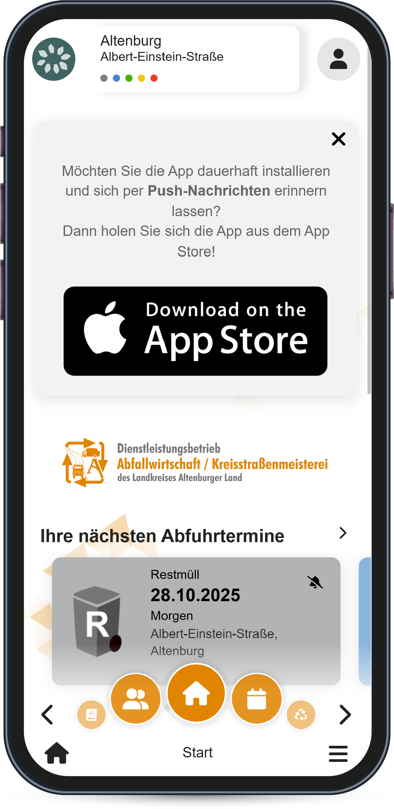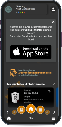 Die Anwendung, gehalten in den Farben der Altenburger Abfallwirtschaft, Orange und Grün, hat neben dem Abfallkalender noch viele weitere nützliche Features. Zum Beispiel kann über die App sogenannter wilder Müll gemeldet werden. Mit einem Foto und dem Standort können die Bürger des Landkreises in Thüringen den zuständigen Abfallwirtschaftsbetrieb informieren und so für eine saubere Umgebung sorgen.